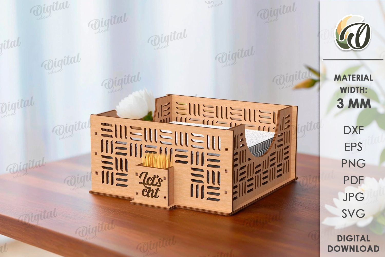 Napkin Holder With Toothpick Holder Laser Cut. Kitchen SVG