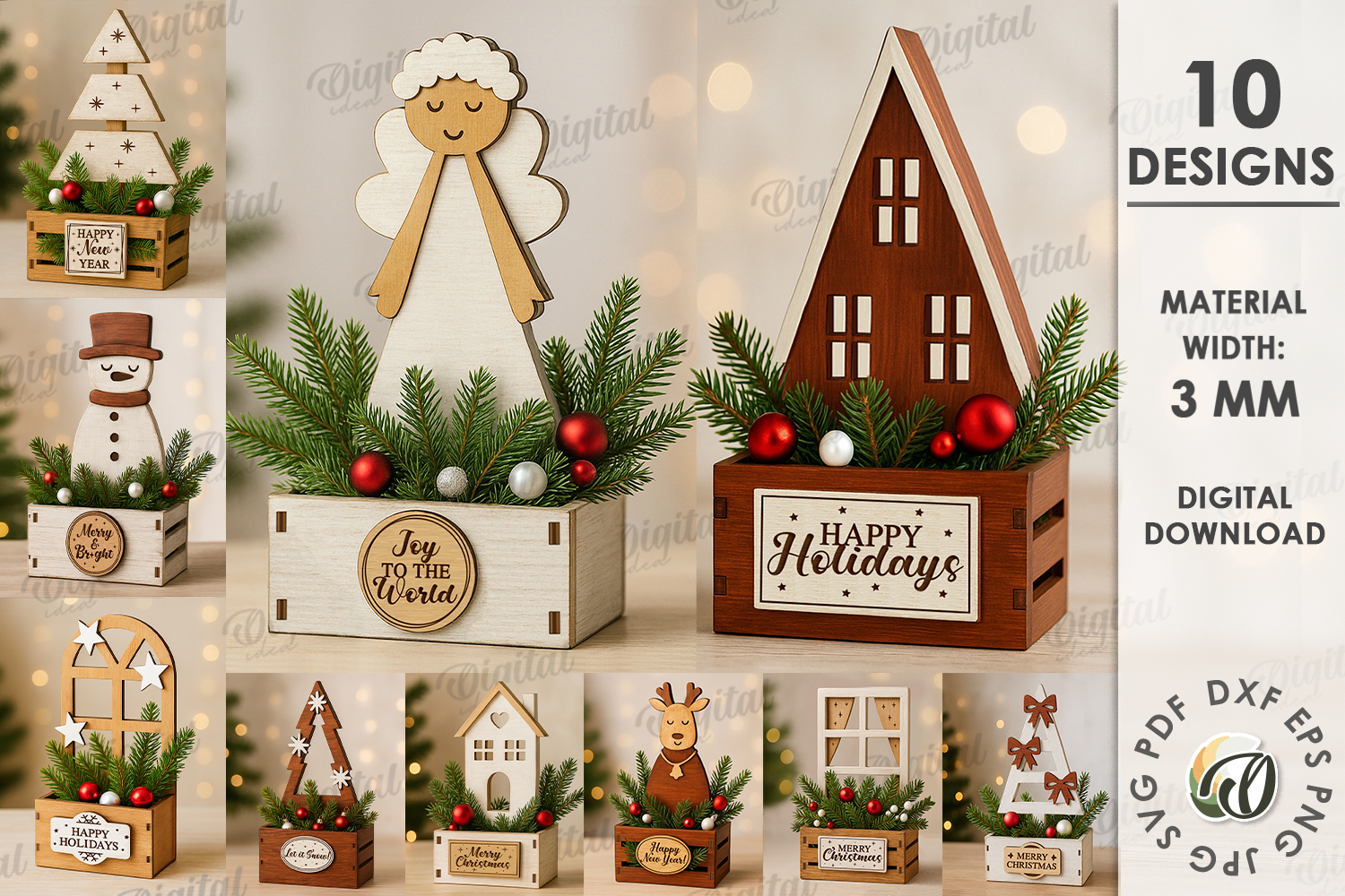 Similar Design Products to Christmas Decorative Boxes Bundle Lasercut. Christmas SVG
