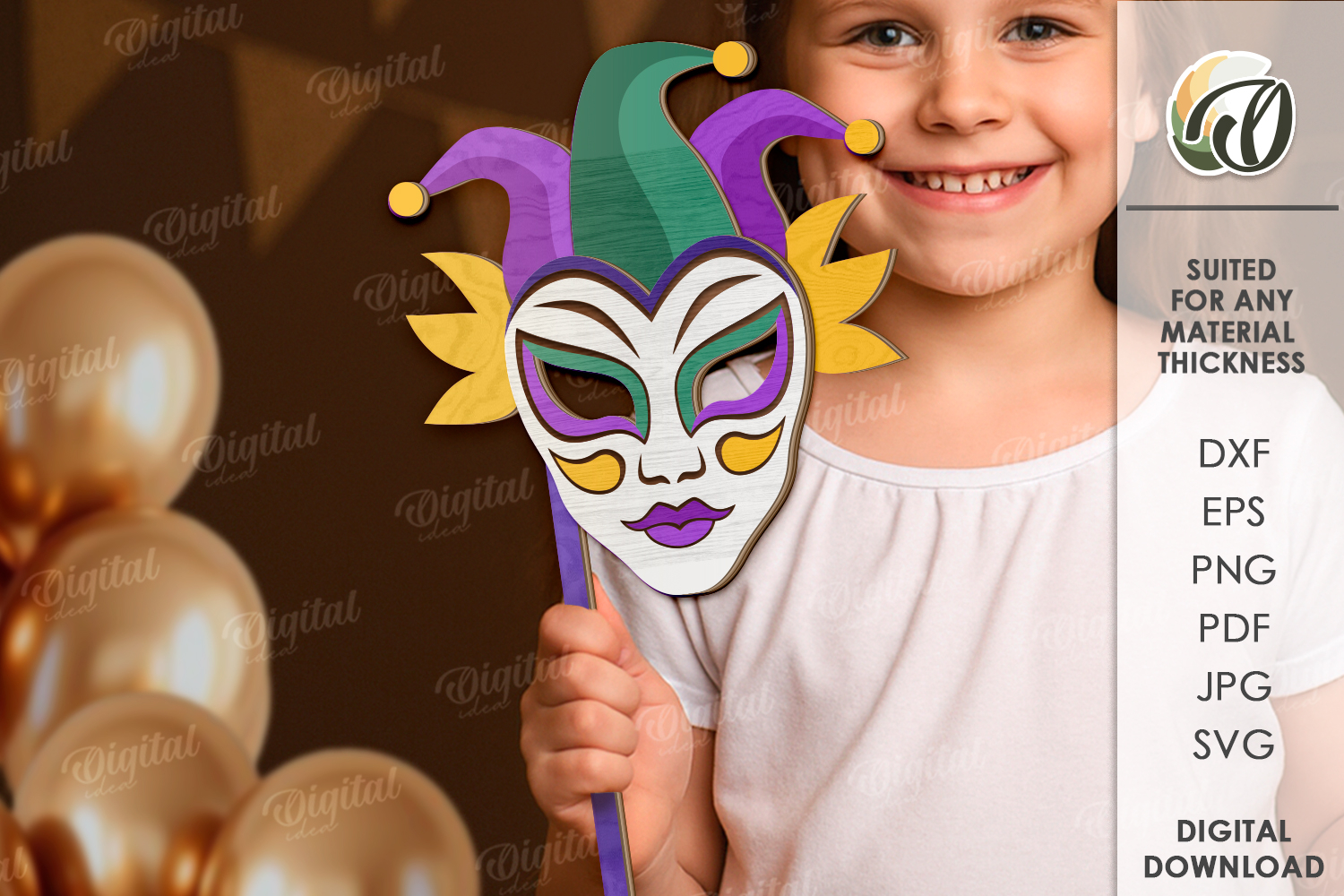 Similar Design Products to Mardi Gras Photo Booth Prop Lasercut. Jester Mask SVG