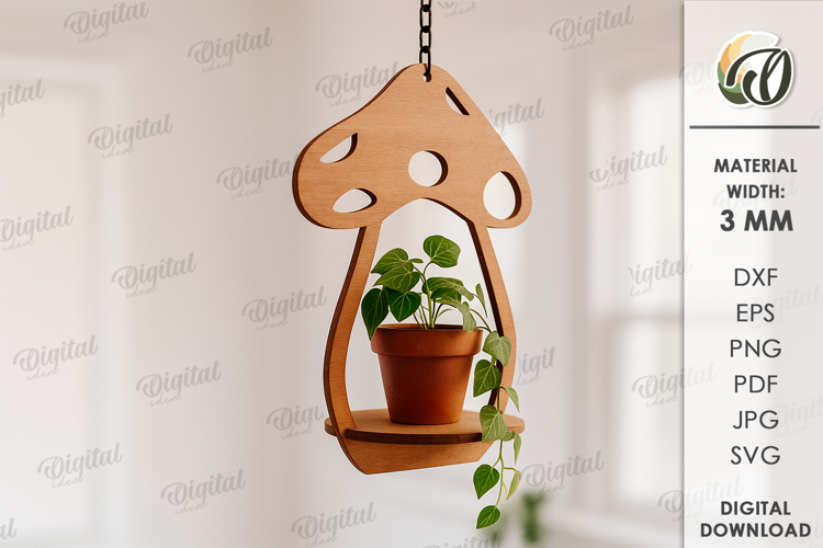 Hanging Hanger Wall Art Home Decor Plant Svg Wall Decor Mushroom Svg Glowforge Files Plant Lover 3d Laser Cut