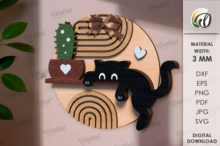 Cat Svg Home Decor Funny Cat Wall Decor Cactus Svg Cat Lover Svg Round Sign Round Sign Svg 3d Laser Cut Cat Laser