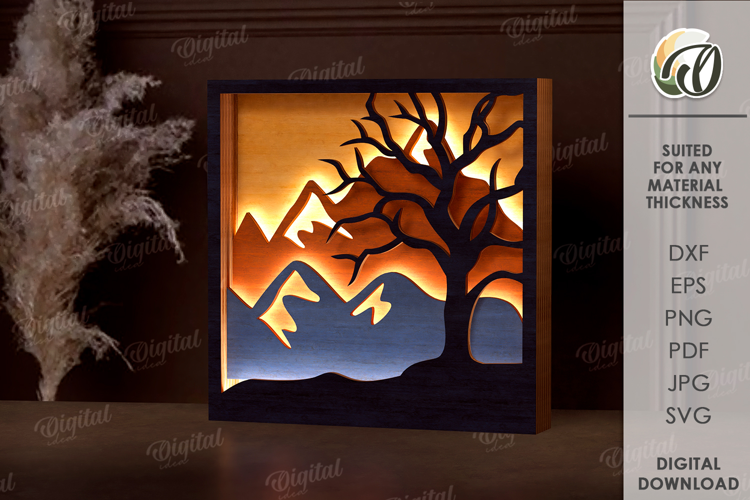Mountains Nature Svg Wall Art Home Decor Wall Decor Nature Scene 3d Laser Cut Led Light Laser Cut Light Box Led Laser
