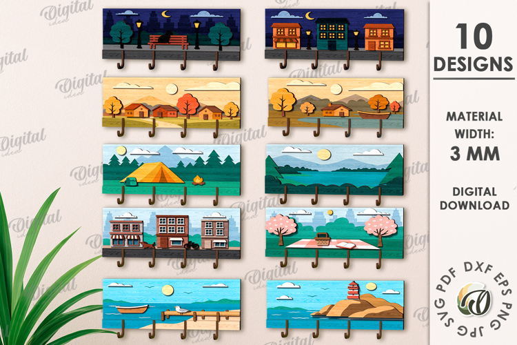 Layered Wooden Hangers Bundle Laser Cut. Wall Key Rack SVG