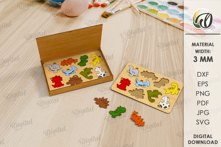 Montessori Educational Dino Svg Puzzle Svg 3d Laser Cut Montessori Toys Kids Puzzle Children Laser Laser Cut Montessori Puzzle Laser
