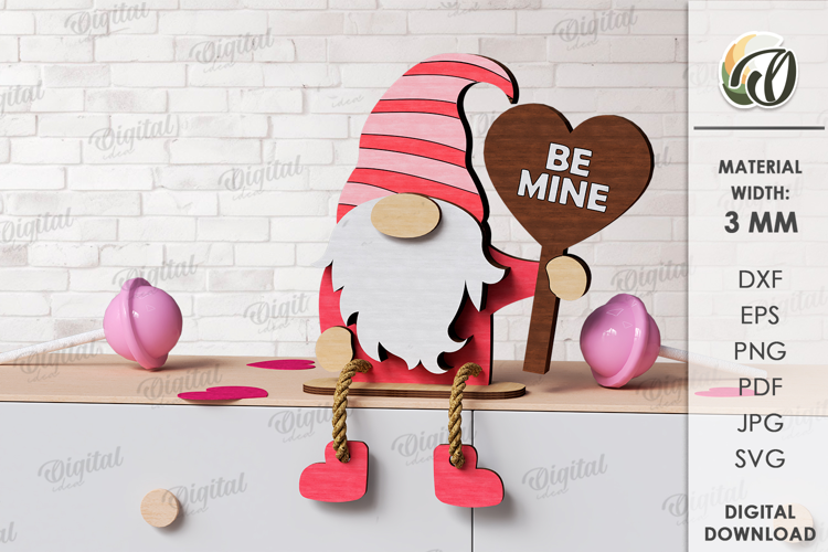 Valentine Gnome Laser Cut. Valentine Shelf Sitter SVG example image 1