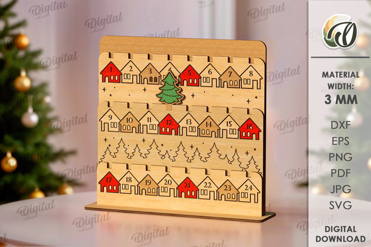 Christmas Svg Christmas Tree Countdown Home Decor Advent Calendar Svg Calendar Svg 3d Laser Cut Christmas Laser Laser Calendar House Laser
