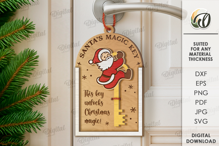 Santa's Magic Key Decor Laser Cut. Christmas Door Hanger SVG