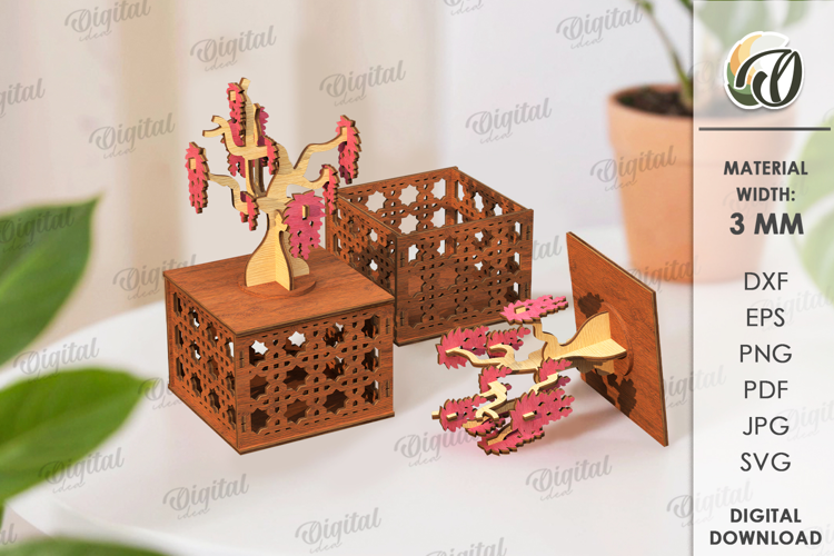 Floral Svg Wooden Box Home Decor Plant Svg Floral Designs Gift Box Svg Storage Box 3d Box 3d Laser Cut Box With Lid