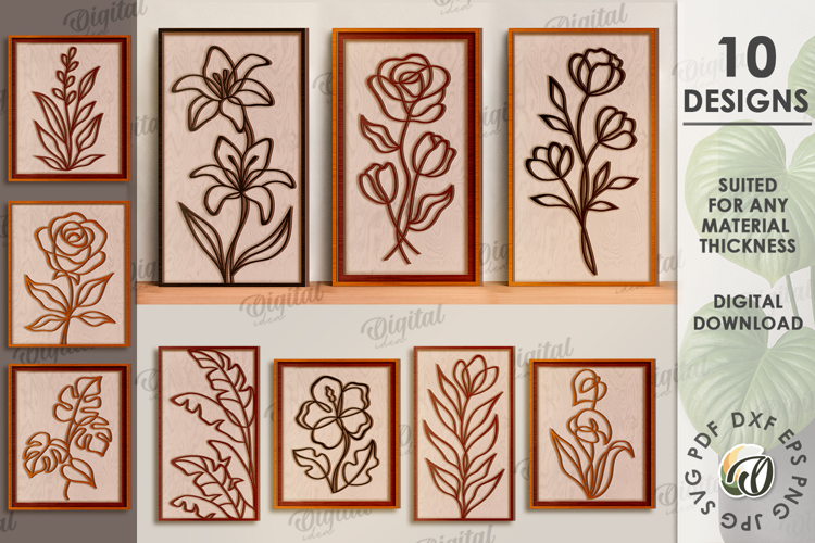Flowers Floral Svg Home Decor Plant Svg Wall Decor Floral Designs Line Art Svg 3d Laser Cut Laser Cut Wall Art Layered Laser