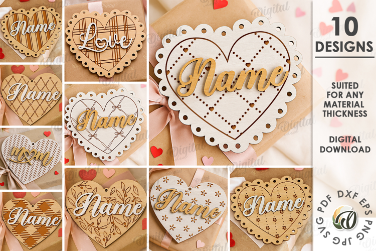 Wooden Heart Tags Bundle Laser Cut. Gift Tags SVG