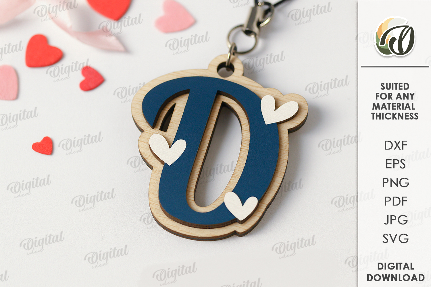 Valentine's Day Monogram Keychain Laser Cut. Letter D SVG