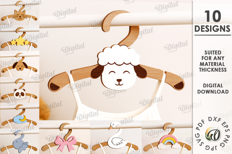 Kids Coat Hangers Bundle Laser Cut. Kids Clothes Hanger SVG