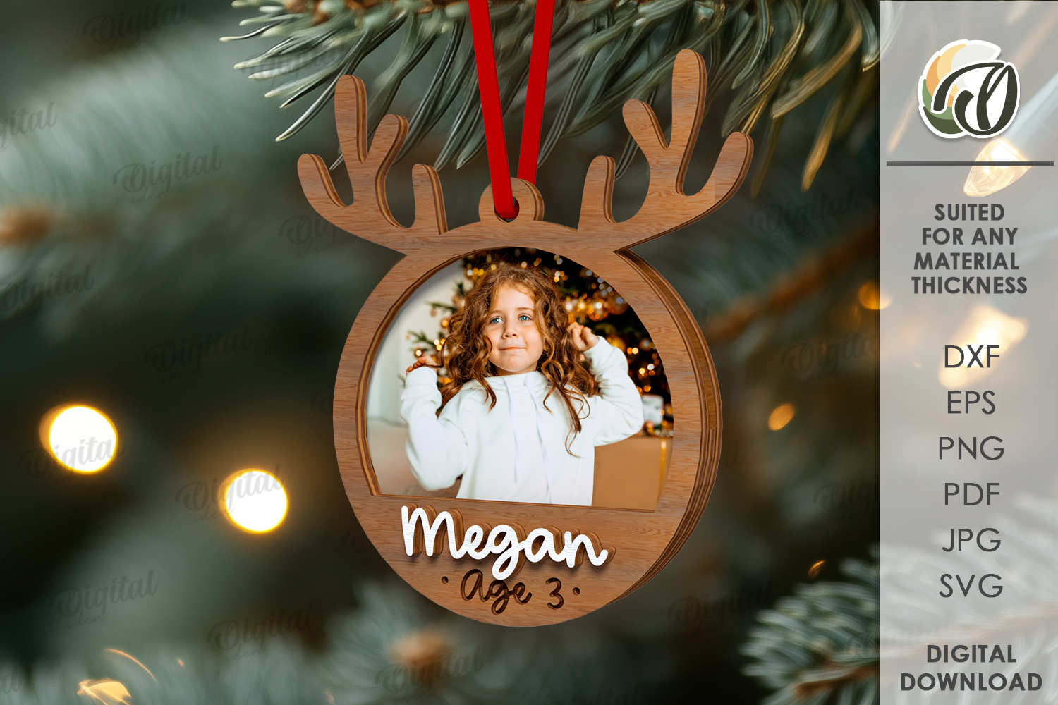 Christmas Svg Reindeer Personalized Christmas Ornament Christmas Frame Christmas Tree Ornament 3d Laser Cut Christmas Laser Photo Frame Laser Kids Laser