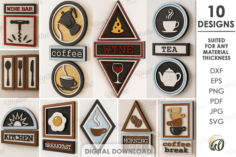 Rustic Kitchen Wall Decors Bundle Laser Cut. Kitchen SVG