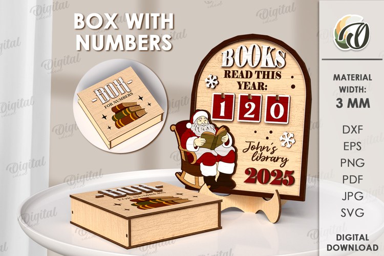 Personalized Tracker Santa Claus Svg Book Lover Svg Reading Svg 3d Laser Cut Laser Sign Laser Cut Stand Book Laser Shelf Sitters