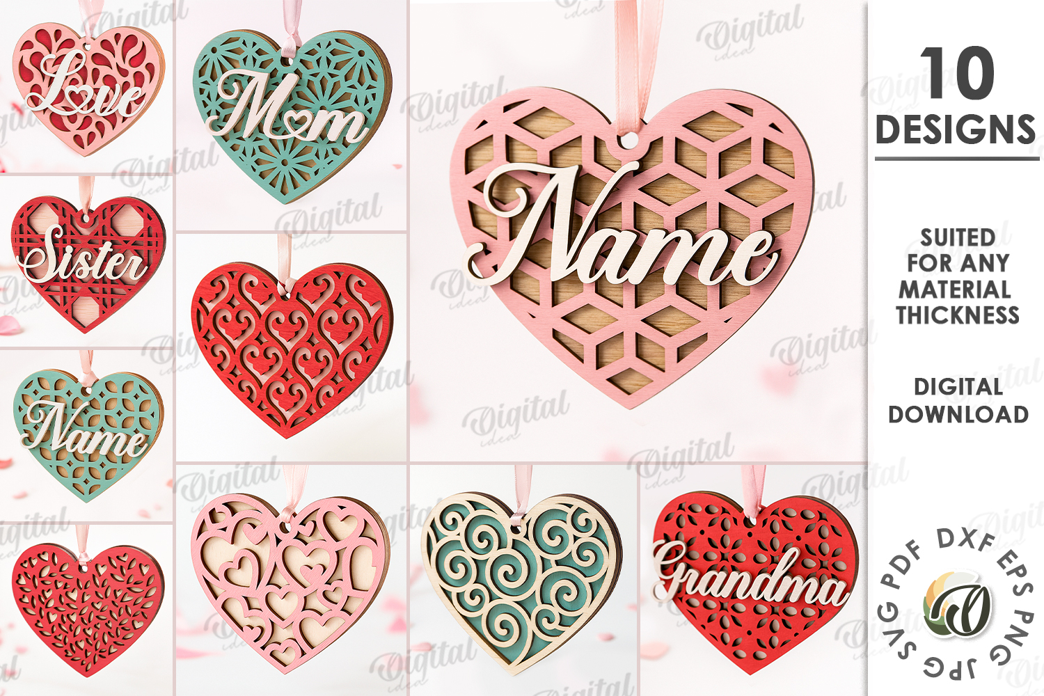 3D Heart Ornaments Bundle Laser Cut. Valentine Decor SVG