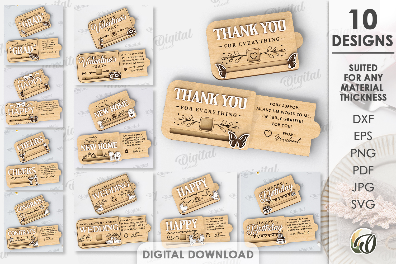 Sliding Greeting Cards Bundle Lasercut. Card with slider SVG