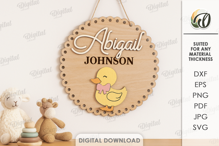Nursery Personalized Kids Svg Kids Room Wall Decor Duck Svg Name Sign 3d Laser Cut Laser Sign Children Laser