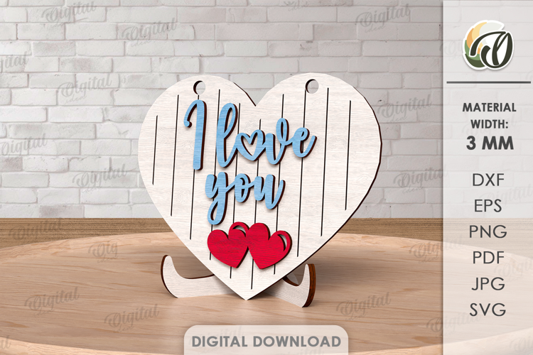 Valentine’s Day Note Stand Laser Cut. Standing Decor SVG example image 1