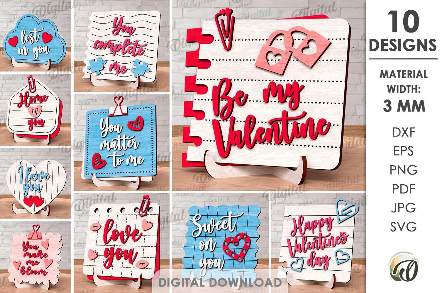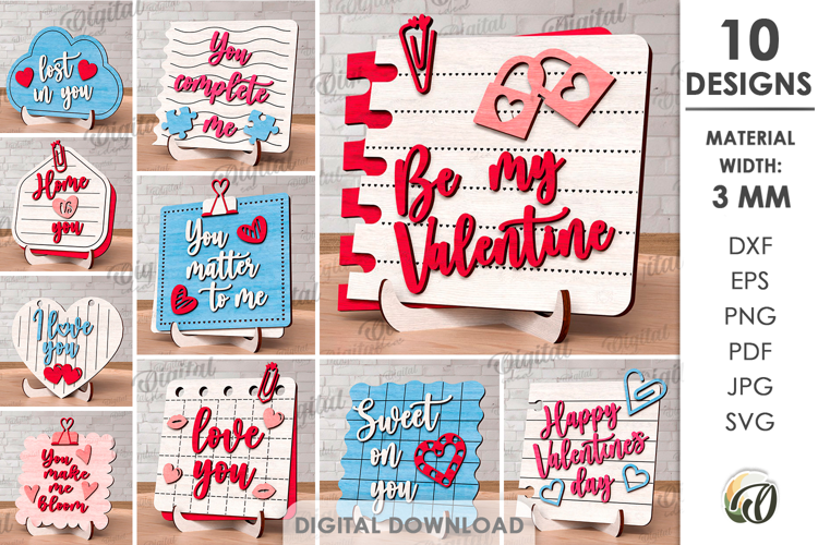 Valentine’s Day Notes Stands Bundle Lasercut. Valentine SVG