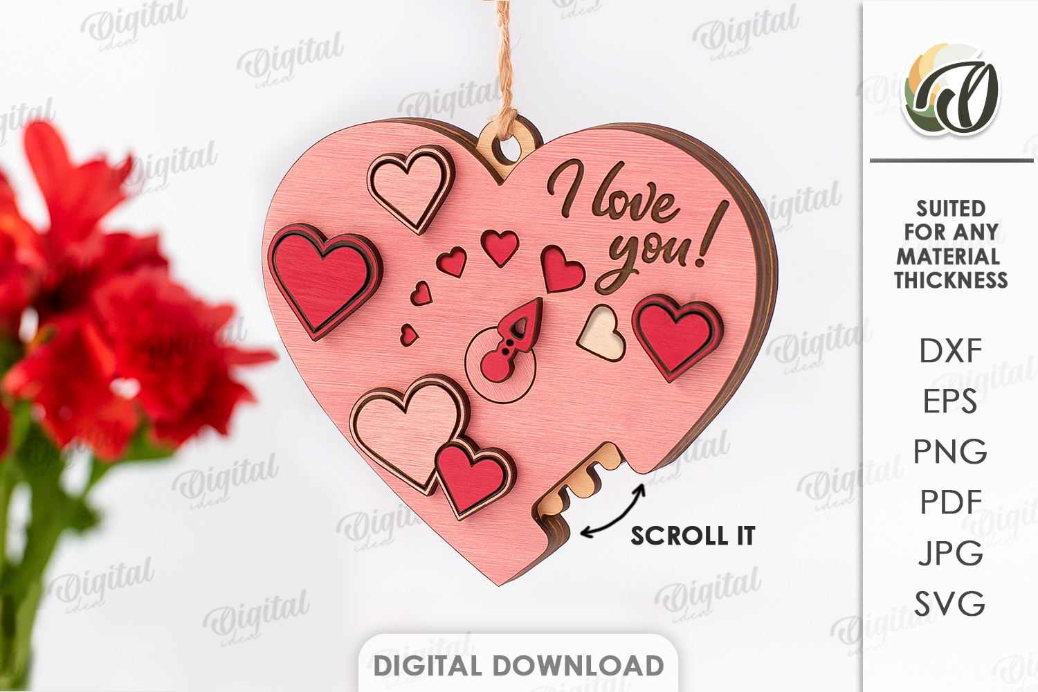 Valentine's Day Gift Ornament Laser Cut. Valentine Gift SVG