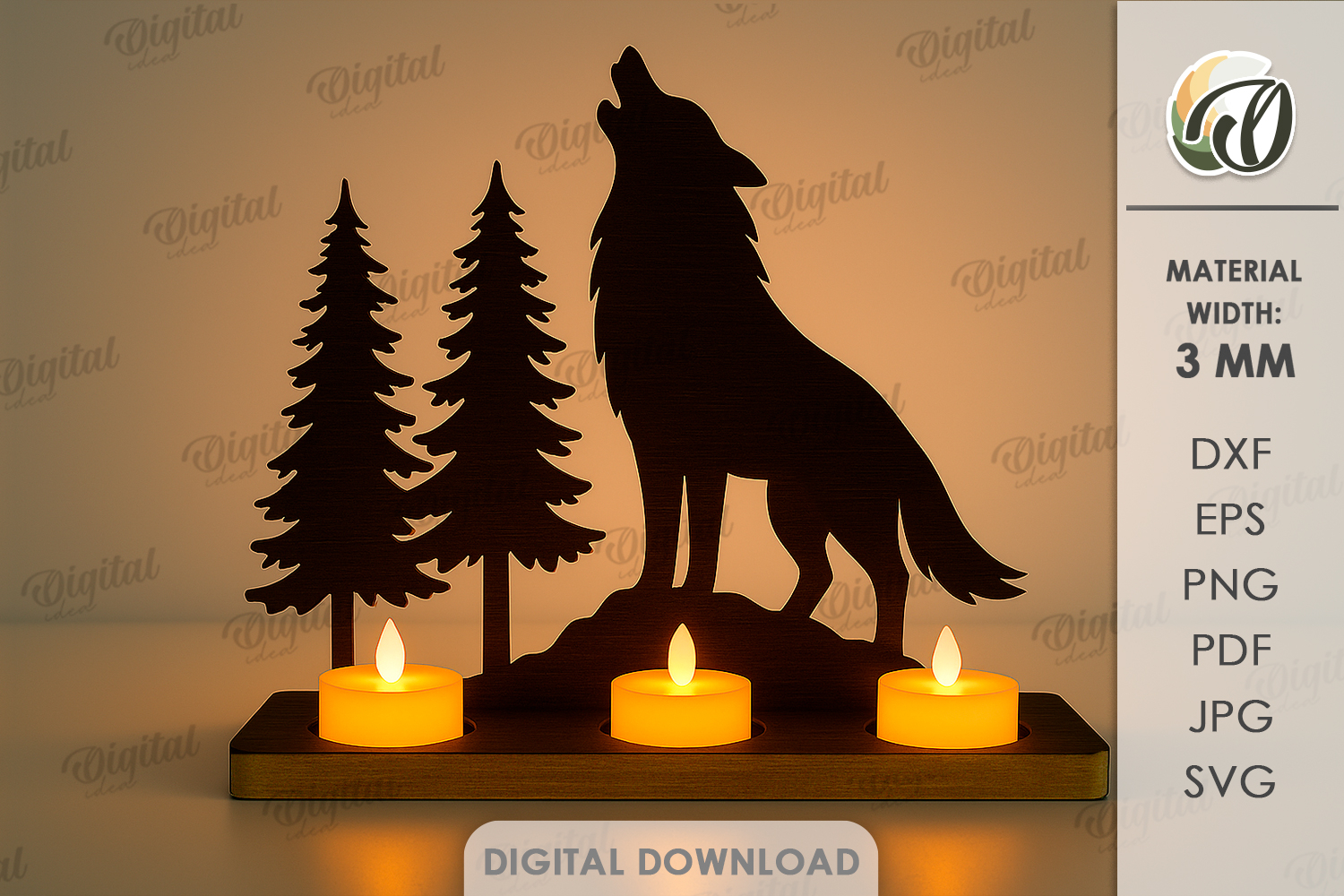 Similar Design Products to Animal Silhuette Candle Holder Laser Cut. Wolf SVG