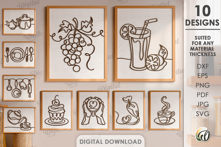 Kitchen Line Arts Bundle Laser Cut. Wall Decor SVG example image 1