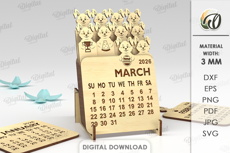 Bunny Svg Cute Animals Home Decor Calendar Svg 3d Laser Cut Animal Laser Laser Cut Stand Laser Calendar Gift Laser Layered Calendar