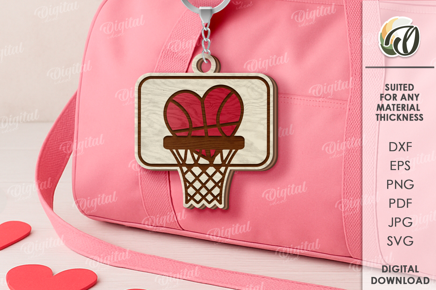 Valentine's Day Sport Keychain Laser Cut. Basketball SVG