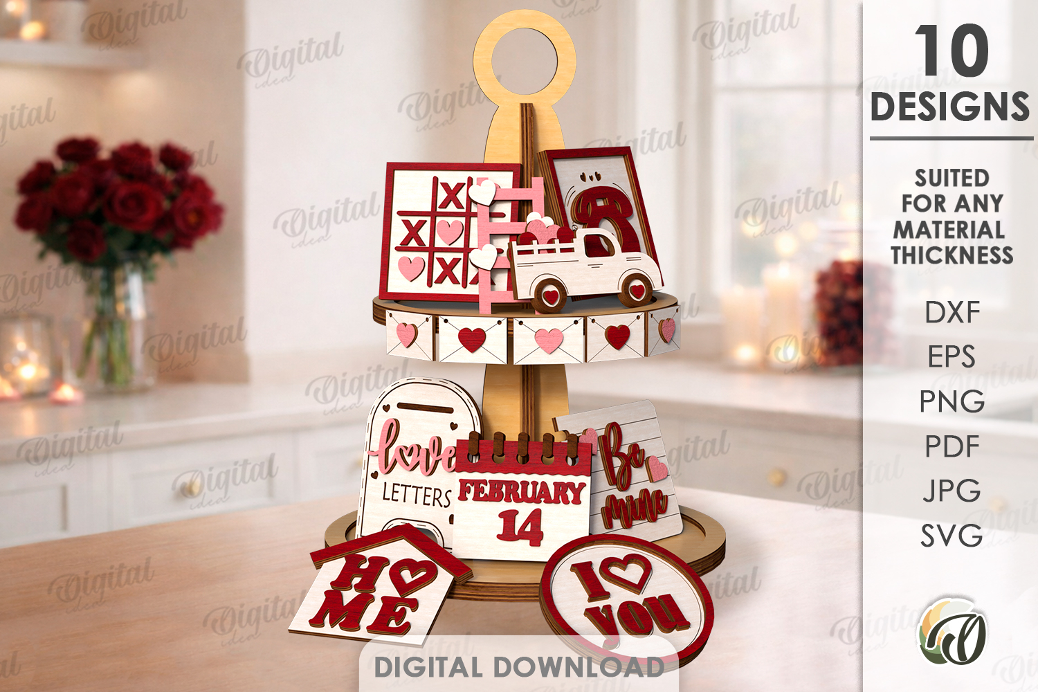 Valentine's Day Tiered Tray Decor Laser Cut. Wall Decor SVG example image 1