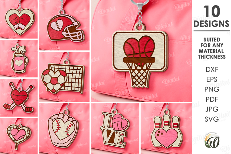 Valentine Sport Keychains Bundle Laser Cut. Valentine SVG
