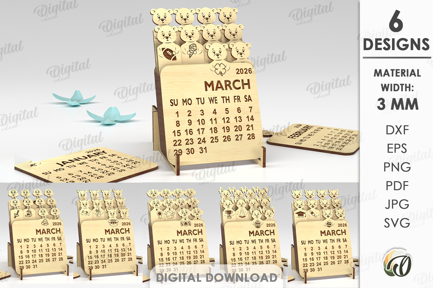 3D Calendars 2026 Bundle Laser Cut. Layered Calendar SVG