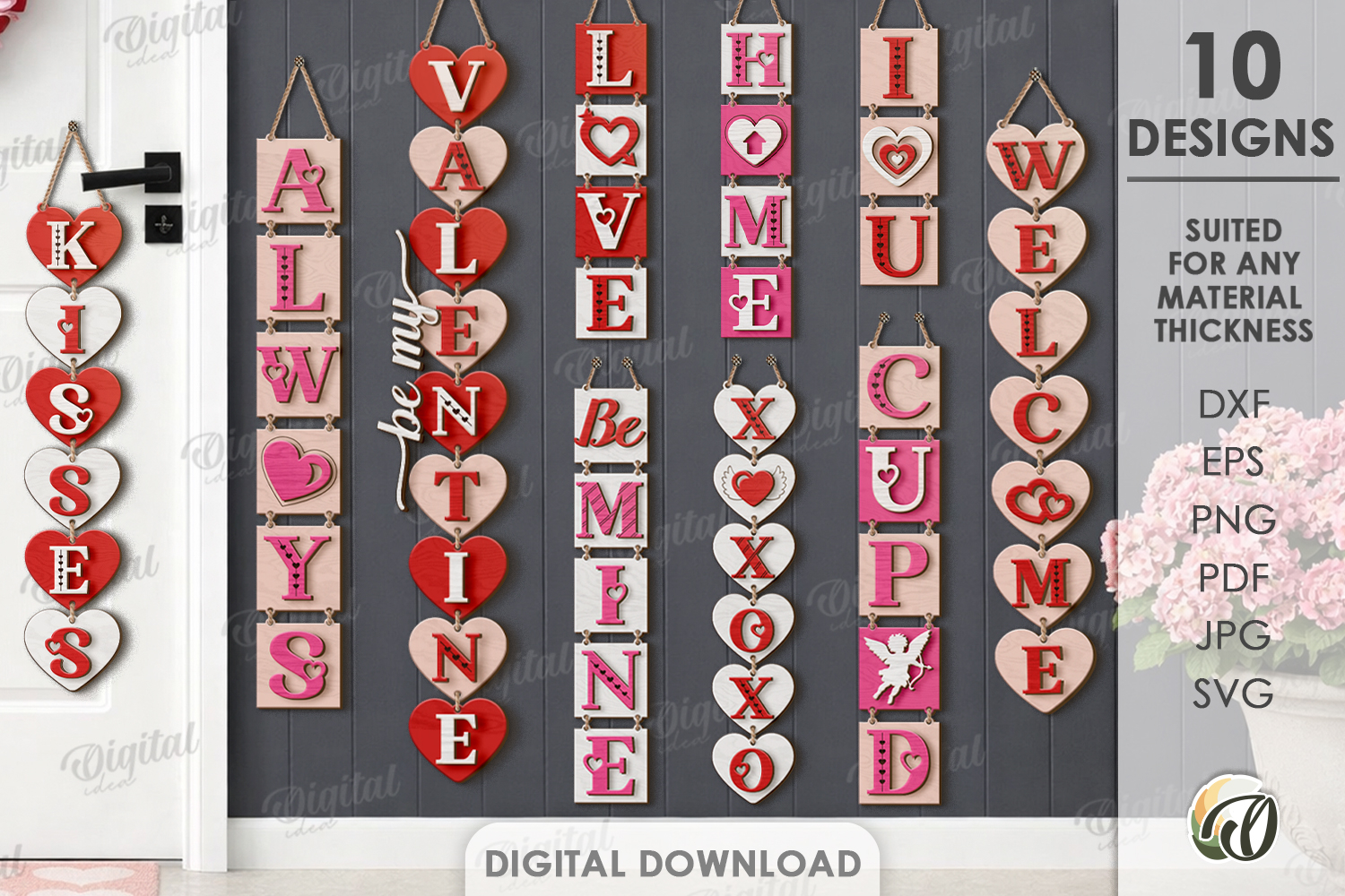 Valentine Front Door Signs Bundle Laser Cut. Door Sign SVG