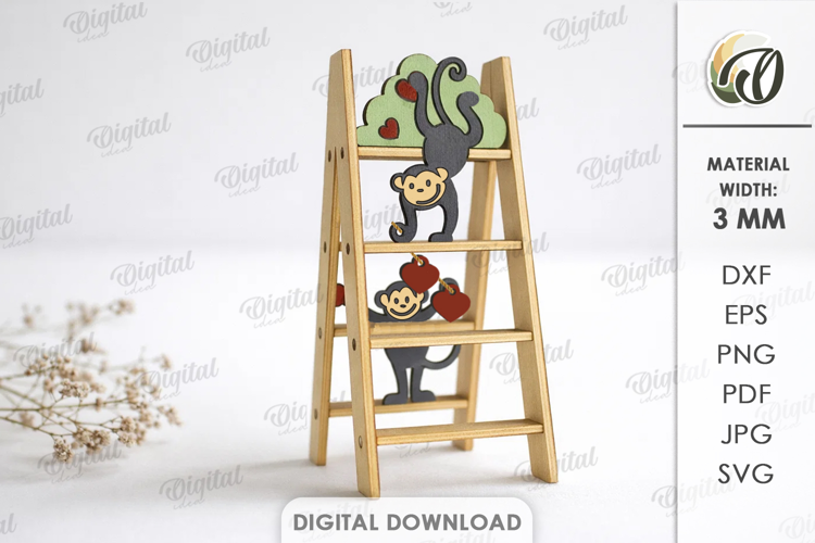 Love Svg Ladder Home Decor Valentine Decor Monkey Svg Happy Valentines Day 3d Laser Cut Heart Laser Valentine Laser Laser Standing