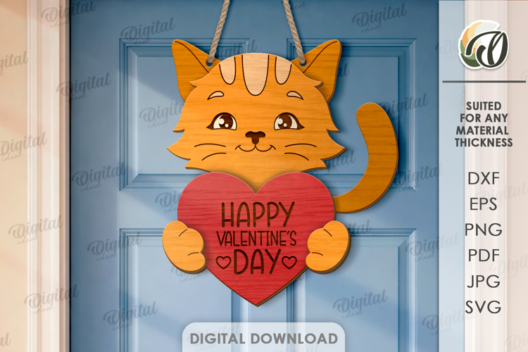 Valentines Svg Valentine Decor Door Hanger Happy Valentines Day Door Sign 3d Laser Cut Cat Laser Heart Laser Valentine Laser Valentine Door Hanger