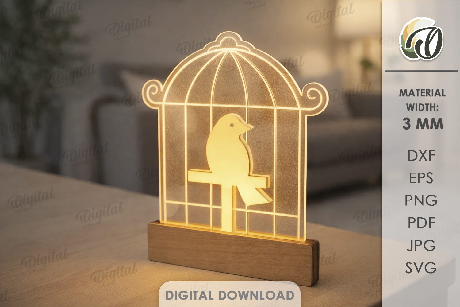 Bird Svg Home Decor Led Lamp Laser Cut Lamp 3d Laser Cut Led Light Acrylic Laser Night Light Svg Led Laser Laset Cut Lamp