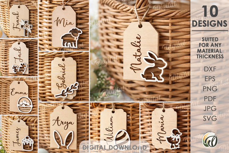 3D Easter Tags Bundle Laser Cut. Personalized Gift Tag SVG