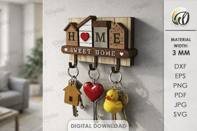 Rustic Svg Home Sweet Home Home Decor Wall Decor Home Sign Key Holder 3d Laser Cut Layered Laser Organizer Laser Key Chain Holder Svg