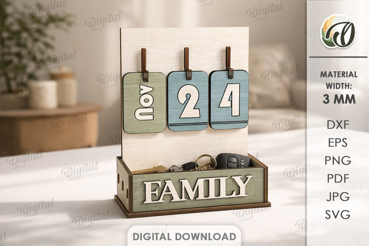 Family Svg Farmhouse Svg Desk Calendar Home Decor Perpetual Calendar Tabletop Calendar Svg 3d Laser Cut Laser Cut Calendar Stand Laser