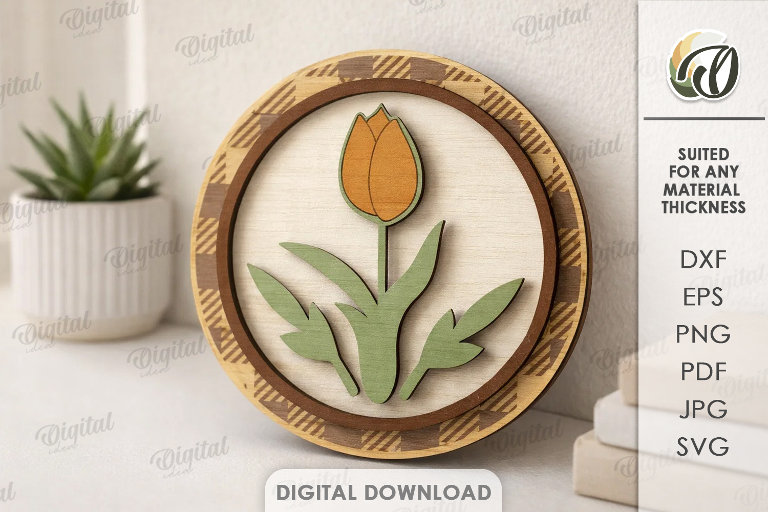 Flower Svg Tulip Svg Home Decor Wall Decor Spring Flowers Svg Round Sign 3d Laser Cut Laser Sign Spring Laser Layered Laser