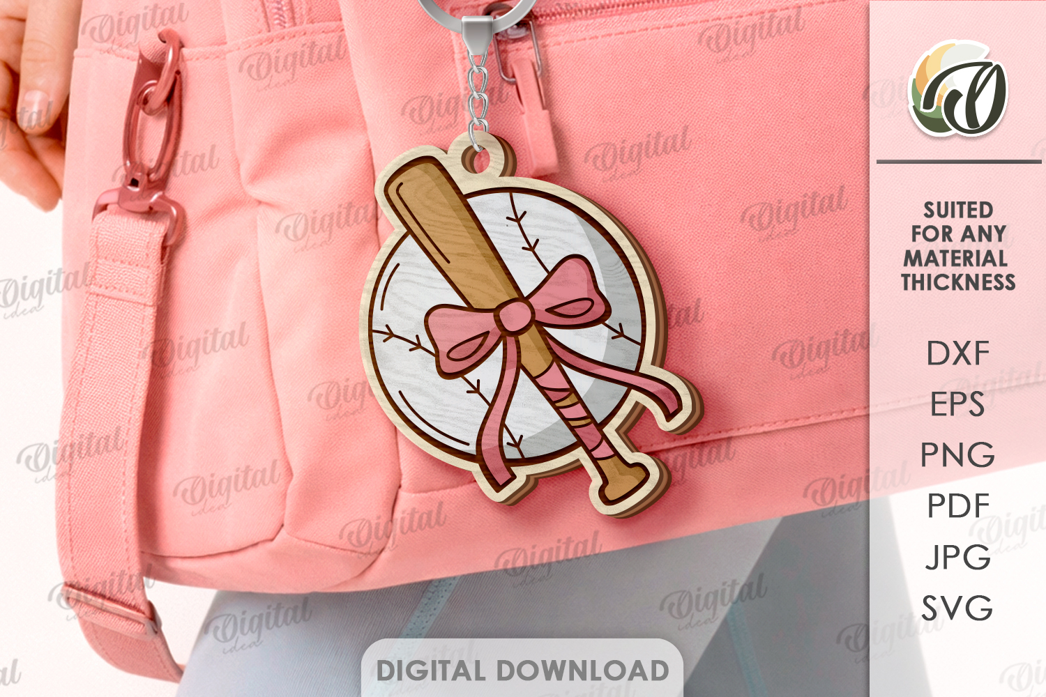 Sport Coquette Keychain Laser Cut. Baseball SVG example image 1