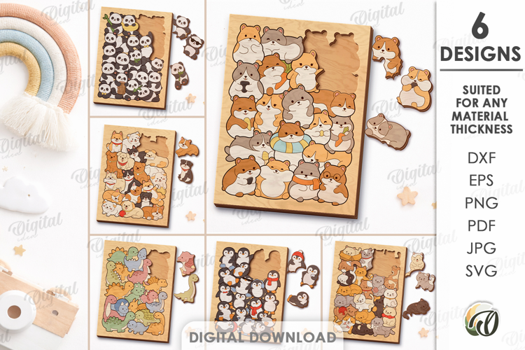 Animal Puzzles Bundle Laser Cut. Kids Puzzle Game SVG