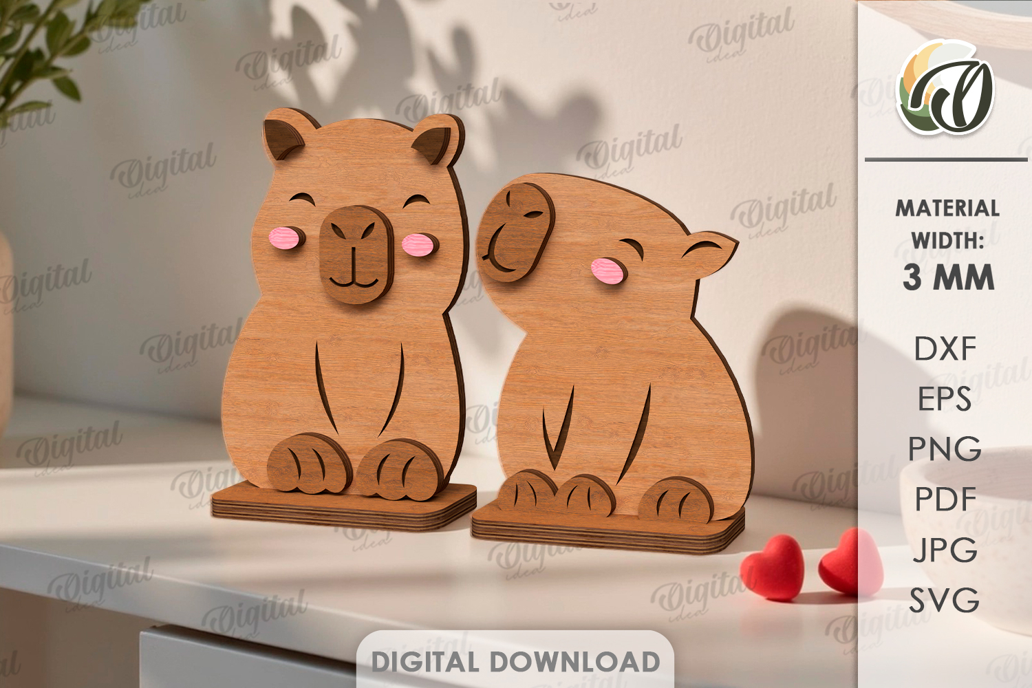 Love Svg Cute Animals Home Decor Valentine Decor Couple Svg Capybara 3d Laser Cut Valentine Laser Stand Laser Shelf Sitters