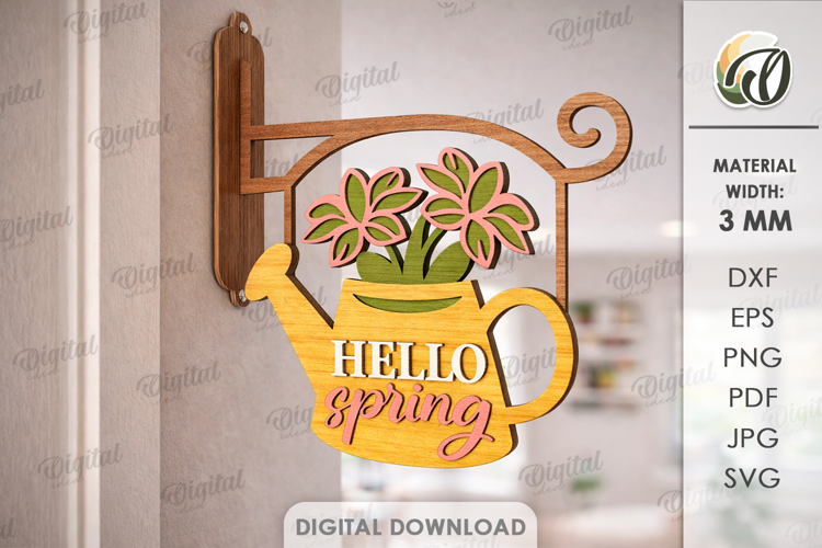 Flowers Watering Can Hanger Wall Art Hello Spring Spring Quotes Spring Sign 3d Laser Cut Spring Laser Layered Laser