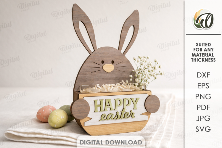Easter Bunny Svg Wooden Box Happy Easter Gift Box Svg Storage Box Candy Holder Easter Gift Box 3d Laser Cut Easter Laser Gift Laser
