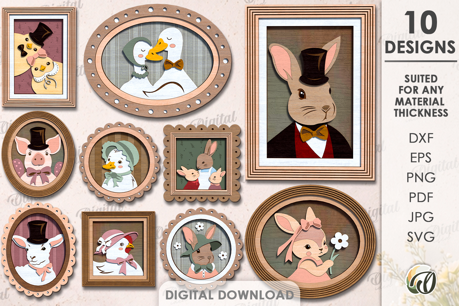 Easter Vintage Portraits Bundle Laser Cut. Wall Decor SVG