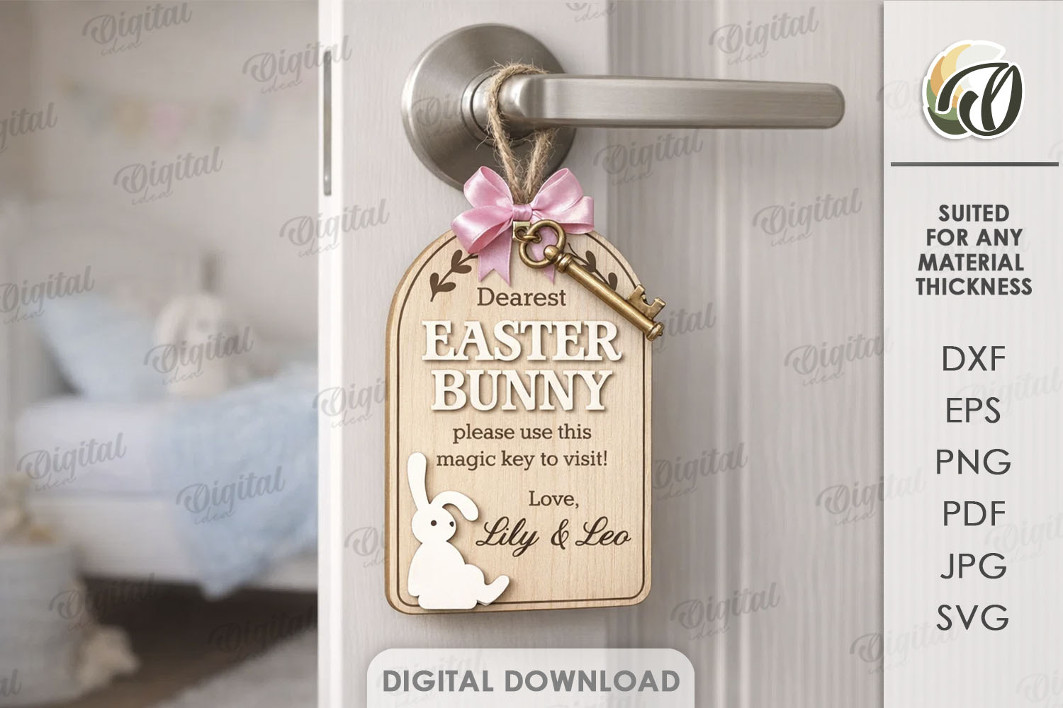 Easter Magic Key Door Hanger Laser Cut. Door Knob Tag SVG example image 1