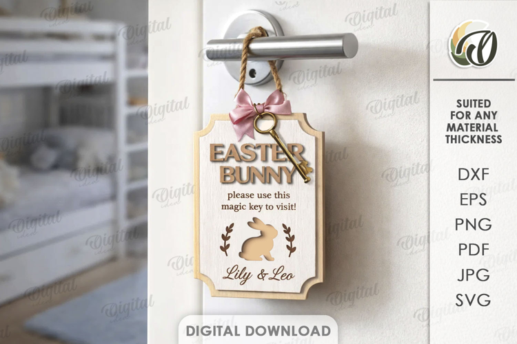 Easter Magic Key Door Hanger Laser Cut. Door Knob Tag SVG example image 1