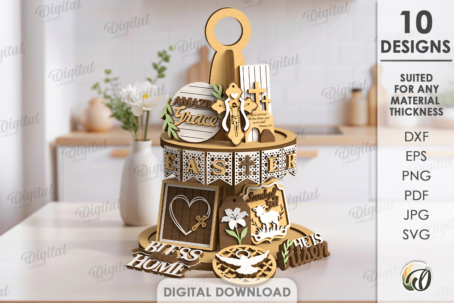 Christian Tiered Tray Decor Laser Cut. Religious Decor SVG example image 1
