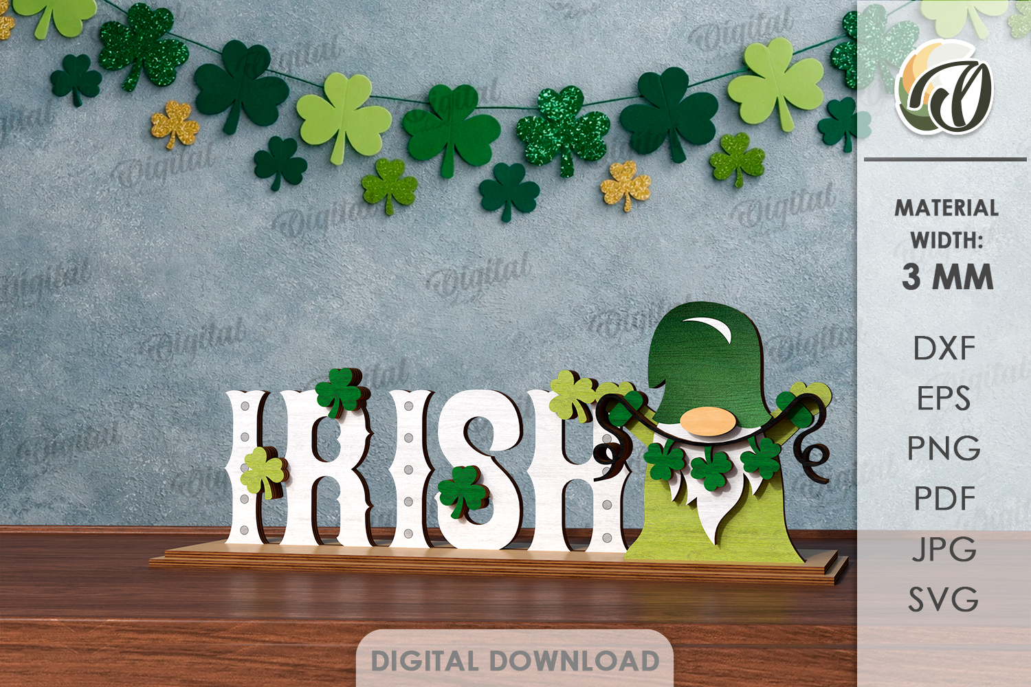 St Patricks Day Svg Irish Svg Shamrock Svg Lucky Svg Home Decor Happy St Patrick's Day 3d Laser Cut Gnome Laser Laser Cut Stand Shelf Sitters
